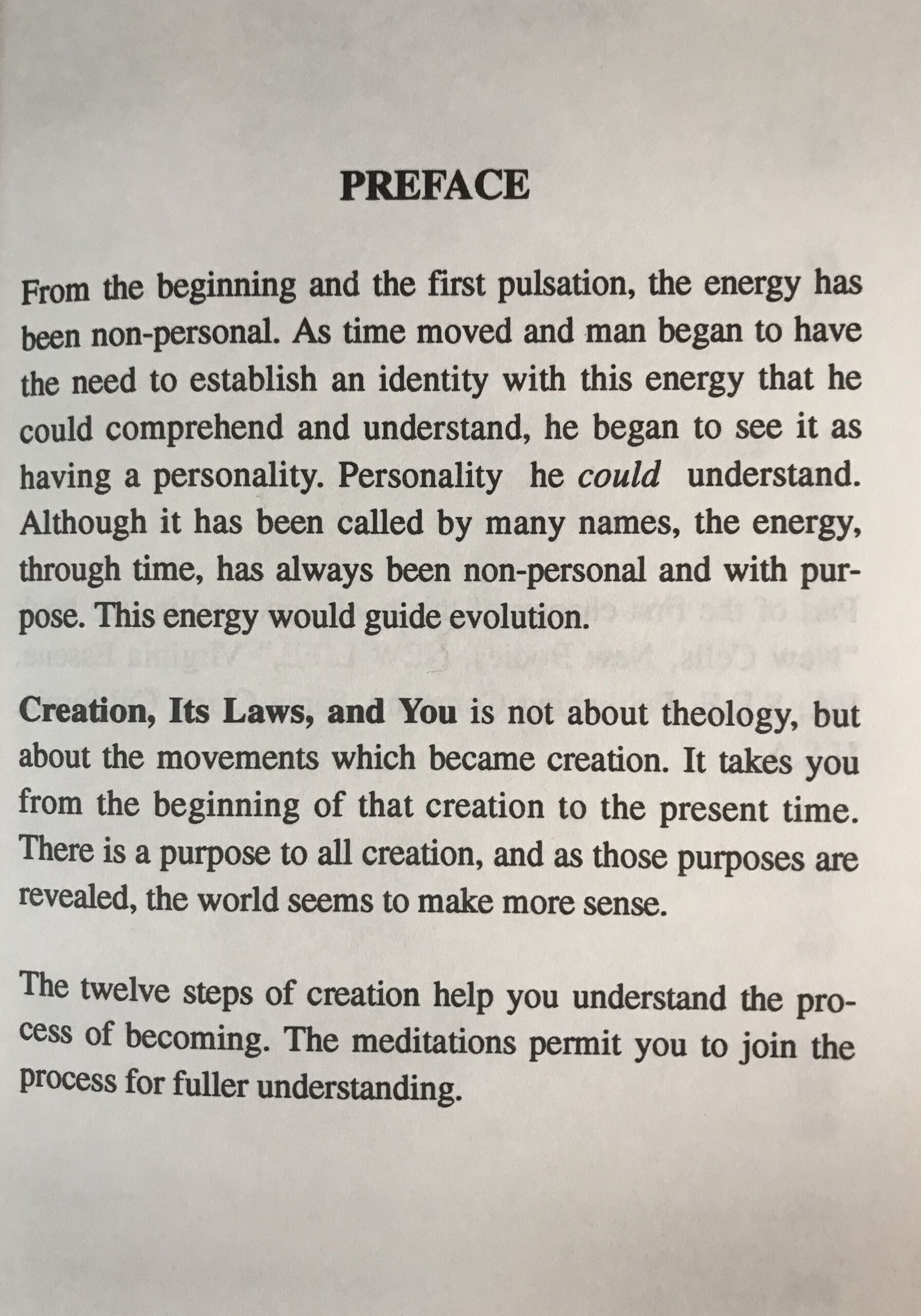This is a treasure of a book describing how creation unfolded, from the first pulsation to the present time. Julian explains that the purpose of these non-personal energies is to guide evolution. Described are the twelve steps of creation, which include the Universal Laws, the numbers and elements, the astrological energies of the planets, the choirs of angels and more. This is a wonderful read for anyone curious about the nature of reality.